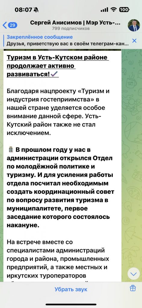 "...Когда нет положительных достижений за весь прошлый мэрский срок, а порулить на благо ИНК районом хочется еще несколько лет, приходится выдумывать для публичного пространства истории, где можно изобразить их себя эффективного менеджера. Не того, кто более полутора лет ввиду элементарной некомпетентности не мог восстановить связь в небольшой деревне прямо на федеральной трассе, и не того, кто разрешил большегрузам ездить через город, убивая его дороги и превращая жилую застройку в отстойник для коммерческих фур. Да и конечно же мэр не хочет, чтобы горожане о нем помнили курьезные и откровенно дурацкие моменты, когда он для борьбы с бездомными собаками, вдруг начал думать как собака и пытался закрыть собачьи приюты на территории в канун гона у животных. Об этом мэр пытается забыть сам и хочет чтобы об этом забыли другие. Для этого и чтобы поправить имидж тотального неудачника и неумехи, мэру придумали виртуальное поле деятельности, где можно рассказывать о любых достижениях. Все равно проверить по факту будет ничего нельзя, а значит врать можно с три короба, но при этом открыто отчитываться об успехах. Речь идет о туристической отрасли, которую якобы в Усть-Куте развивает мэр...."Это был наш прогноз, а вот что мэр написал у себя в Телеграмм по этой теме буквально вчера: