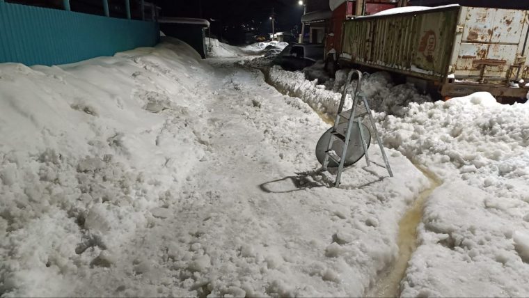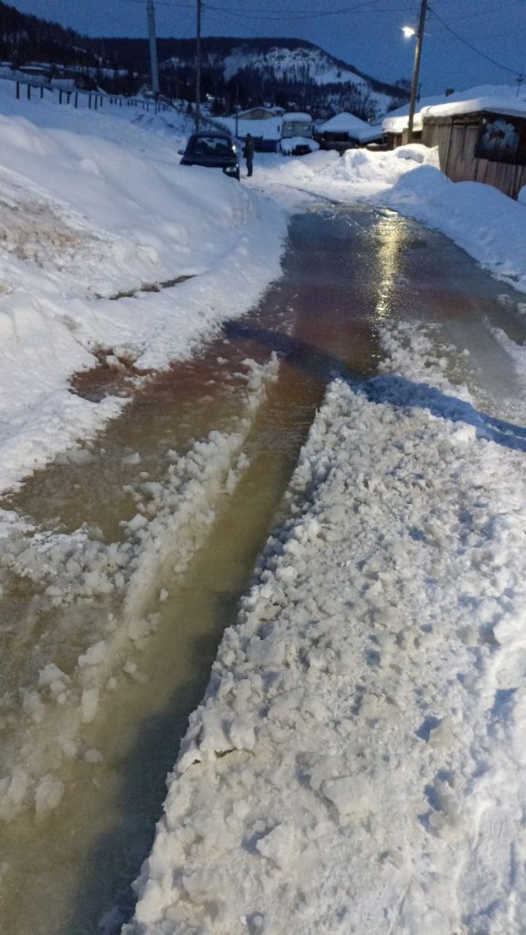 В Усть-Куте ручей ежегодно топит зимой дорогу в микрорайон