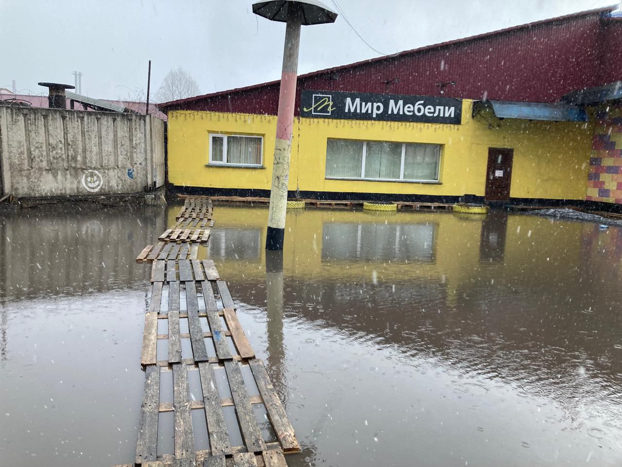 Люди спешно отыскали и соорудили из поддонов что-то вроде тротуаров, но это плохо защищает от глобального потопа.
